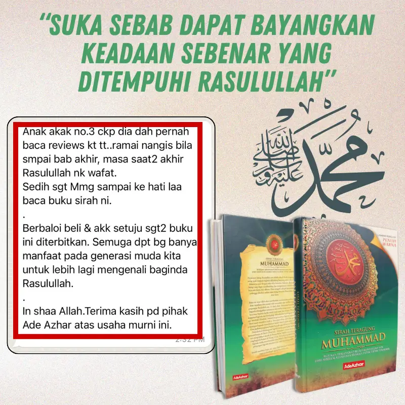 “Sungguh, membaca buku ini umpama melihat secara langsung pengorbanan baginda Nabi Muhammad SAW buat kita umatnya.”