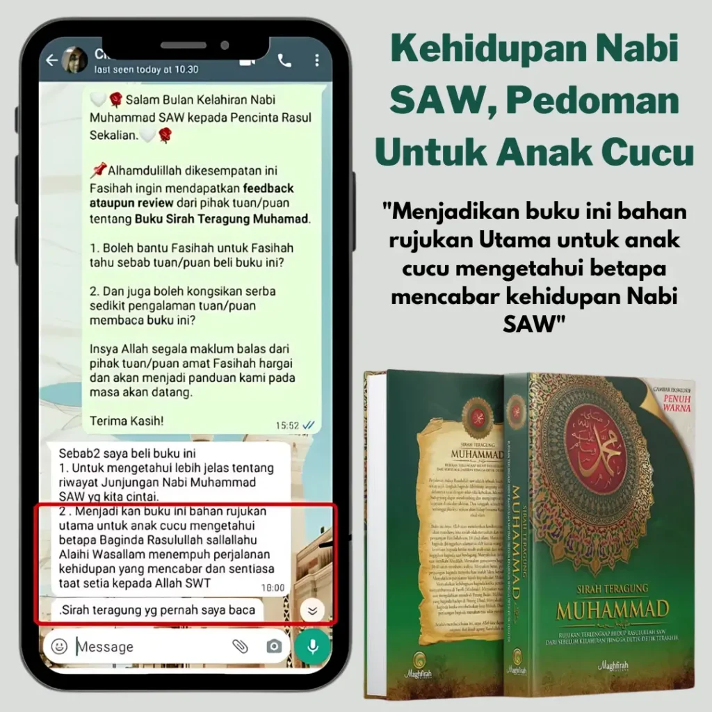 Ya! jika anda peminat buku-buku cinta nabi, ceramah-ceramah kisah nabi, dan ingin tingkatkan rasa cinta dan rindu pada Nabi Muhammad SAW… Anda wajib order buku sirah nabi muhammad ini sekarang.